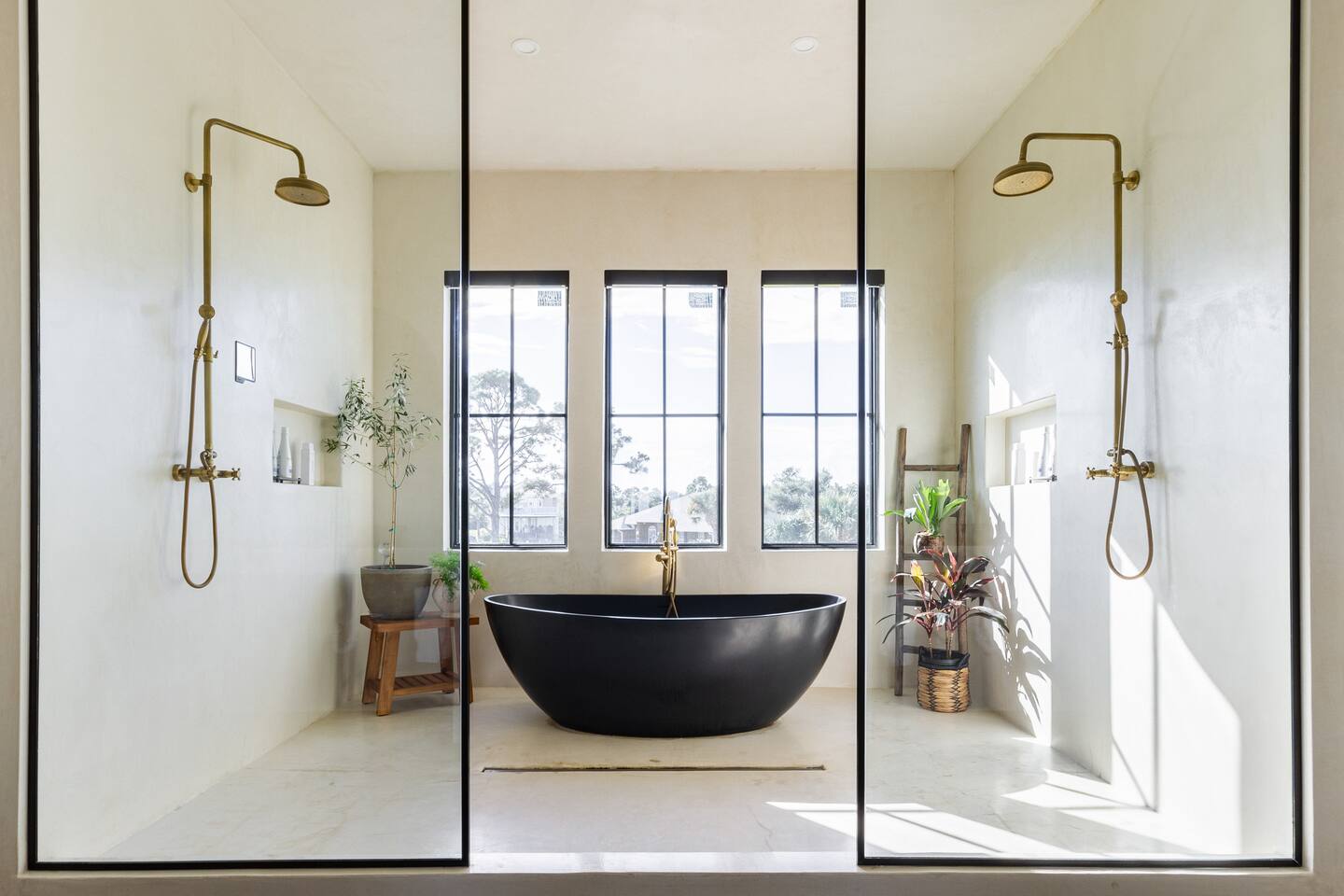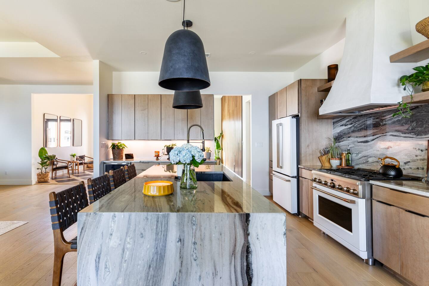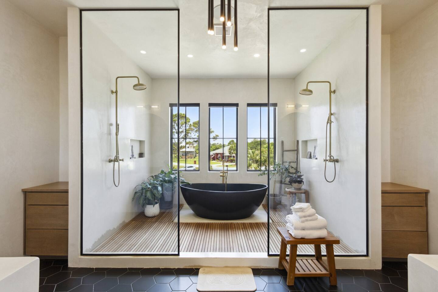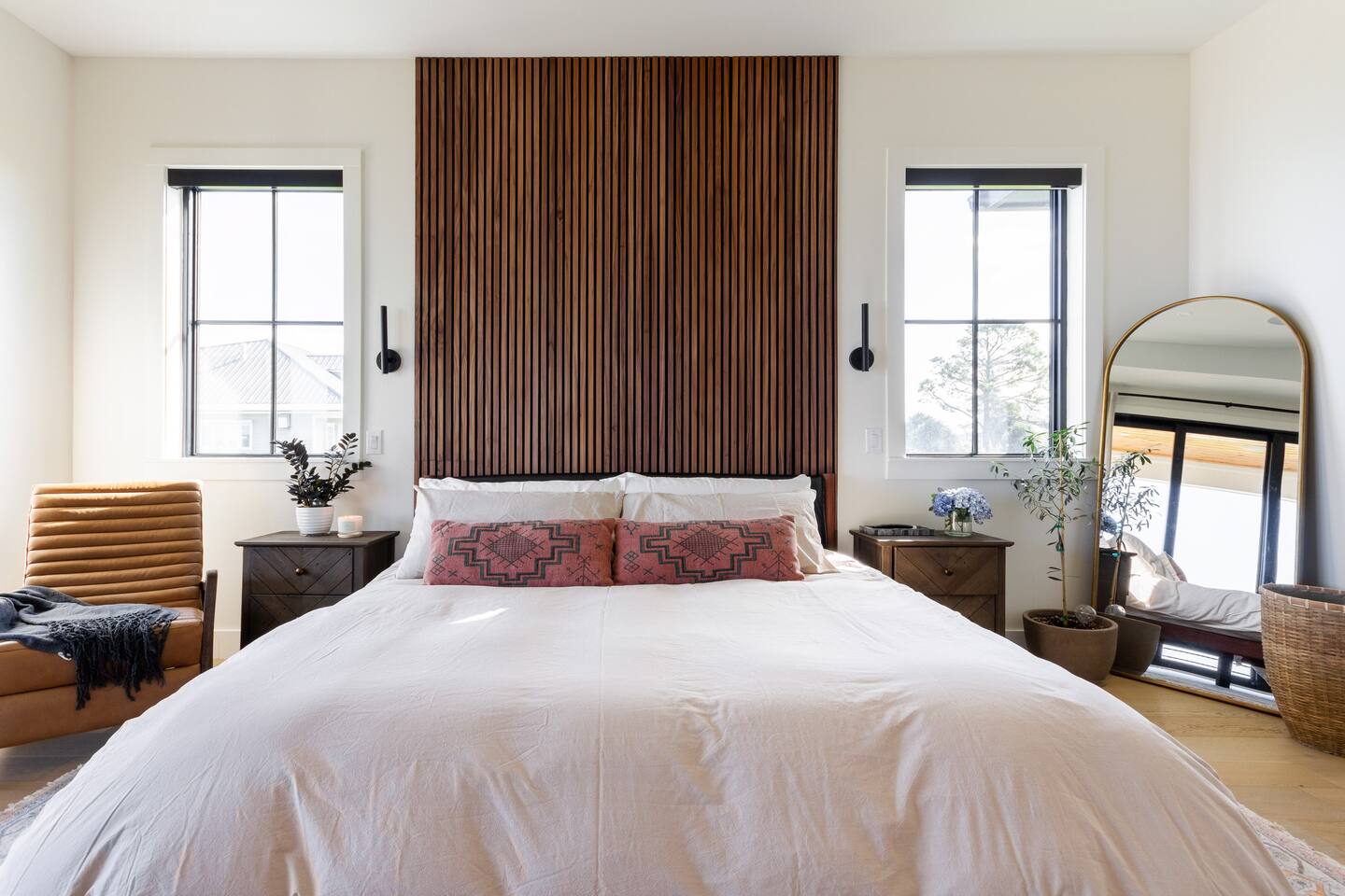 Our stunning 5000 square foot new waterfront home features open concept living at its finest. The spacious gourmet kitchen is equipped with a Big Green Egg and Blackstone grilling options, providing everything you need for cooking a gourmet meal. The beautiful living room offers a gas fireplace, flat screen TV, and comfy seating. The home includes four spacious bedrooms with luxury bedding and large picture windows. The master ensuite bath looks like it should be in a magazine, with its beautiful tadelakt walls, walk-in shower with teak floors, and garden tub, as well as an electric fireplace in the master suite. The property also features a stunning private office, a baby grand piano, and a boat slip to tie up your boat. If you are lucky enough to stay at our home on Tuesdays or Thursdays, you may even get to see the Blue Angels practice overhead. It's an amazing sight to see and hear. Additionally, you won't want to miss the frequent dolphins that pass by. Watch for them in the early mornings and evenings.
