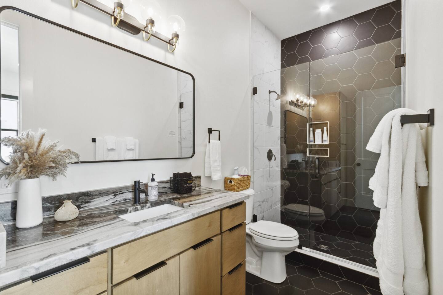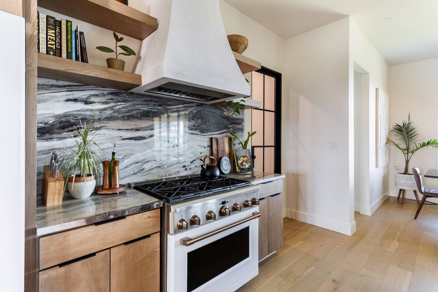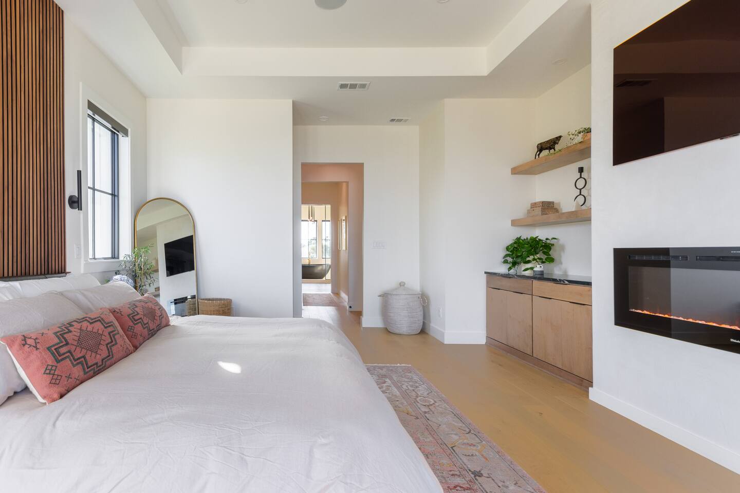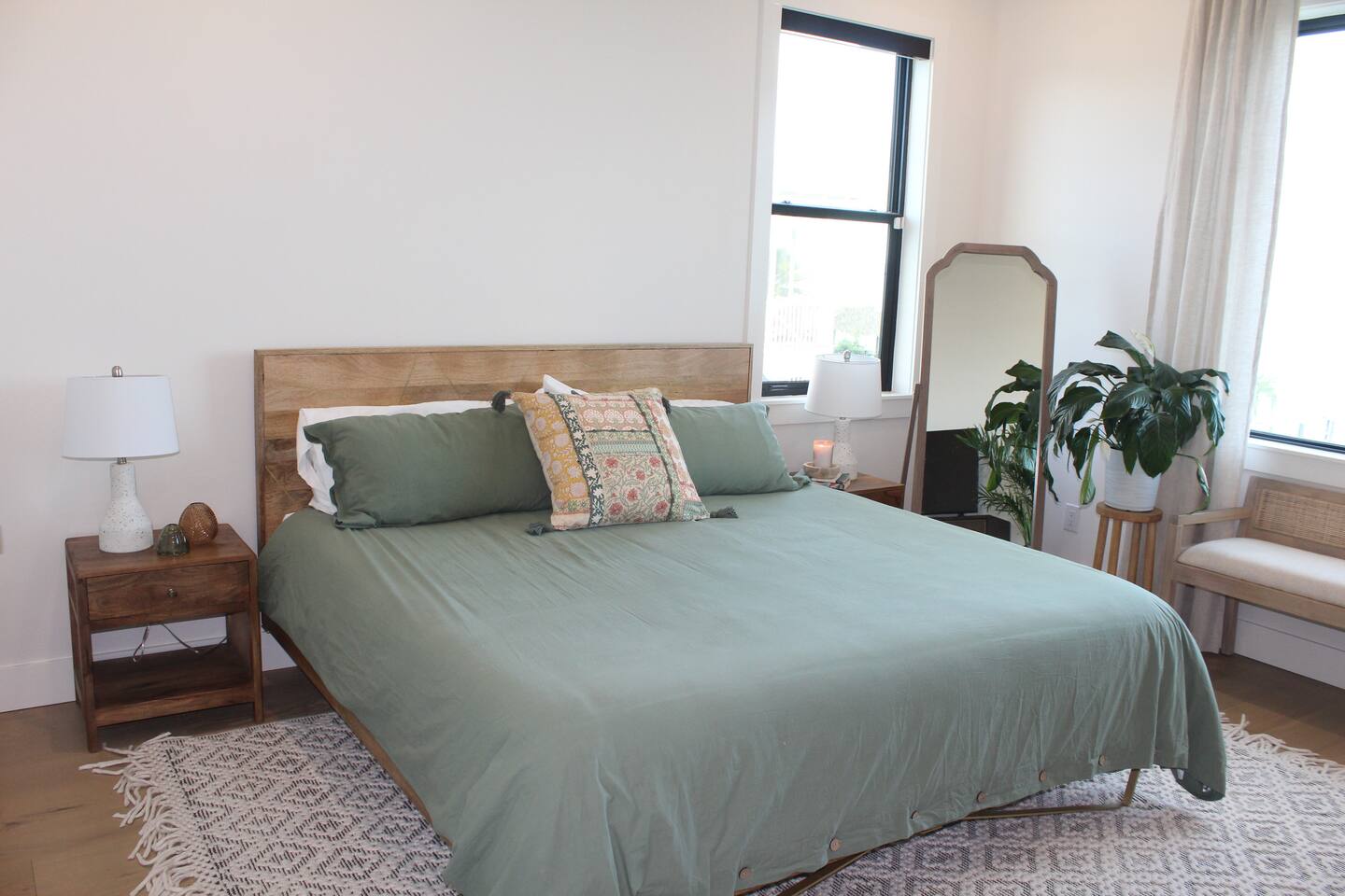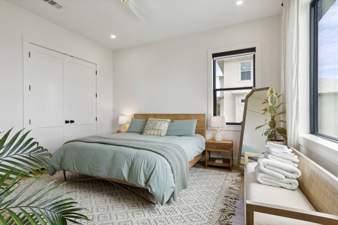 Our stunning 5000 square foot new waterfront home features open concept living at its finest. The spacious gourmet kitchen is equipped with a Big Green Egg and Blackstone grilling options, providing everything you need for cooking a gourmet meal. The beautiful living room offers a gas fireplace, flat screen TV, and comfy seating. The home includes four spacious bedrooms with luxury bedding and large picture windows. The master ensuite bath looks like it should be in a magazine, with its beautiful tadelakt walls, walk-in shower with teak floors, and garden tub, as well as an electric fireplace in the master suite. The property also features a stunning private office, a baby grand piano, and a boat slip to tie up your boat. If you are lucky enough to stay at our home on Tuesdays or Thursdays, you may even get to see the Blue Angels practice overhead. It's an amazing sight to see and hear. Additionally, you won't want to miss the frequent dolphins that pass by. Watch for them in the early mornings and evenings.