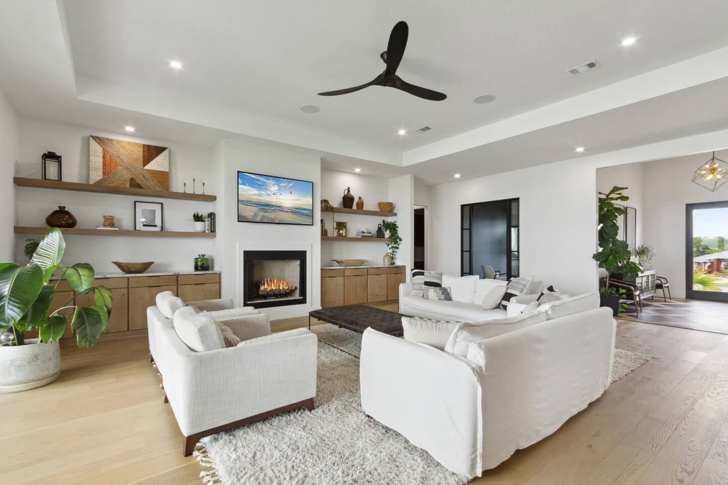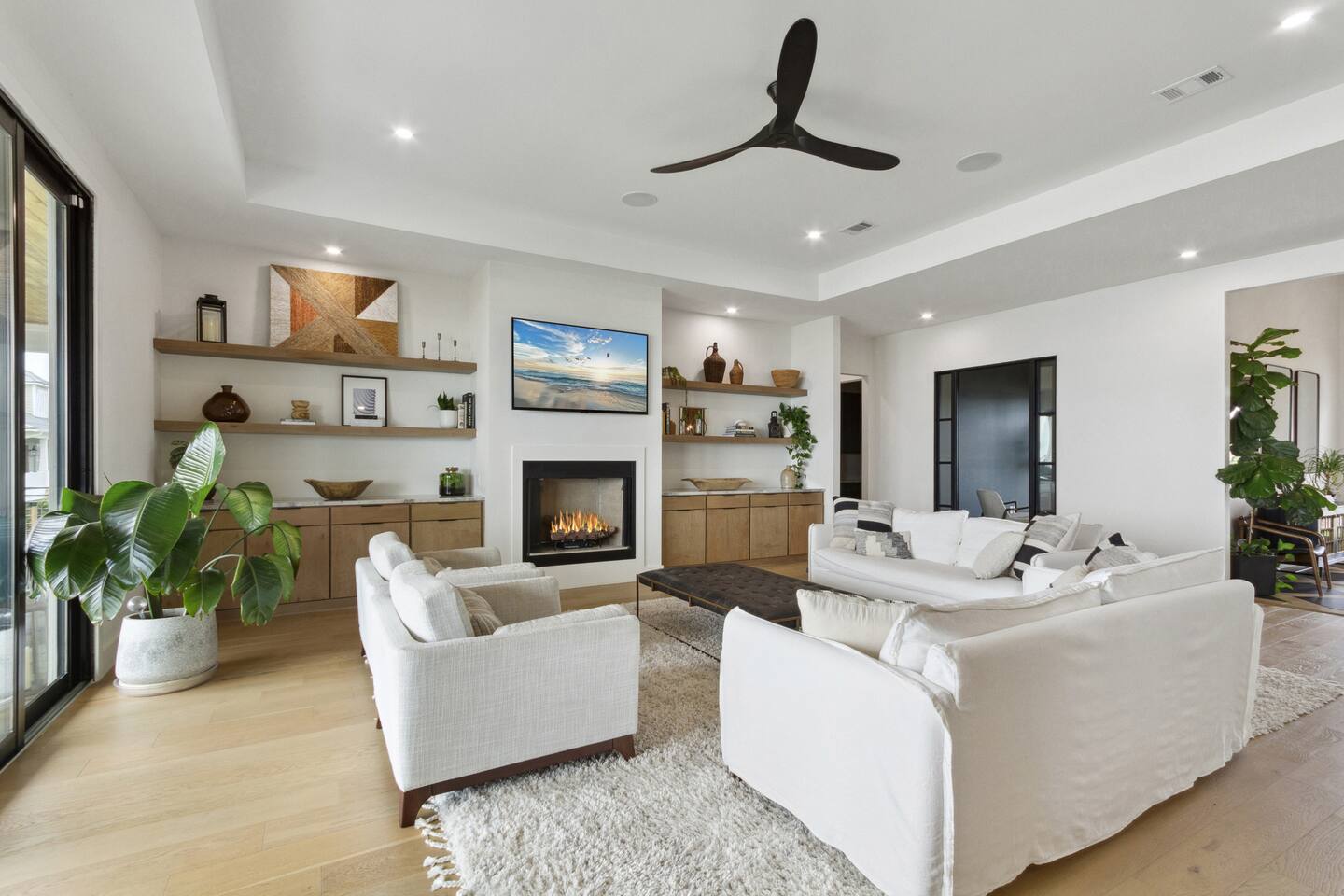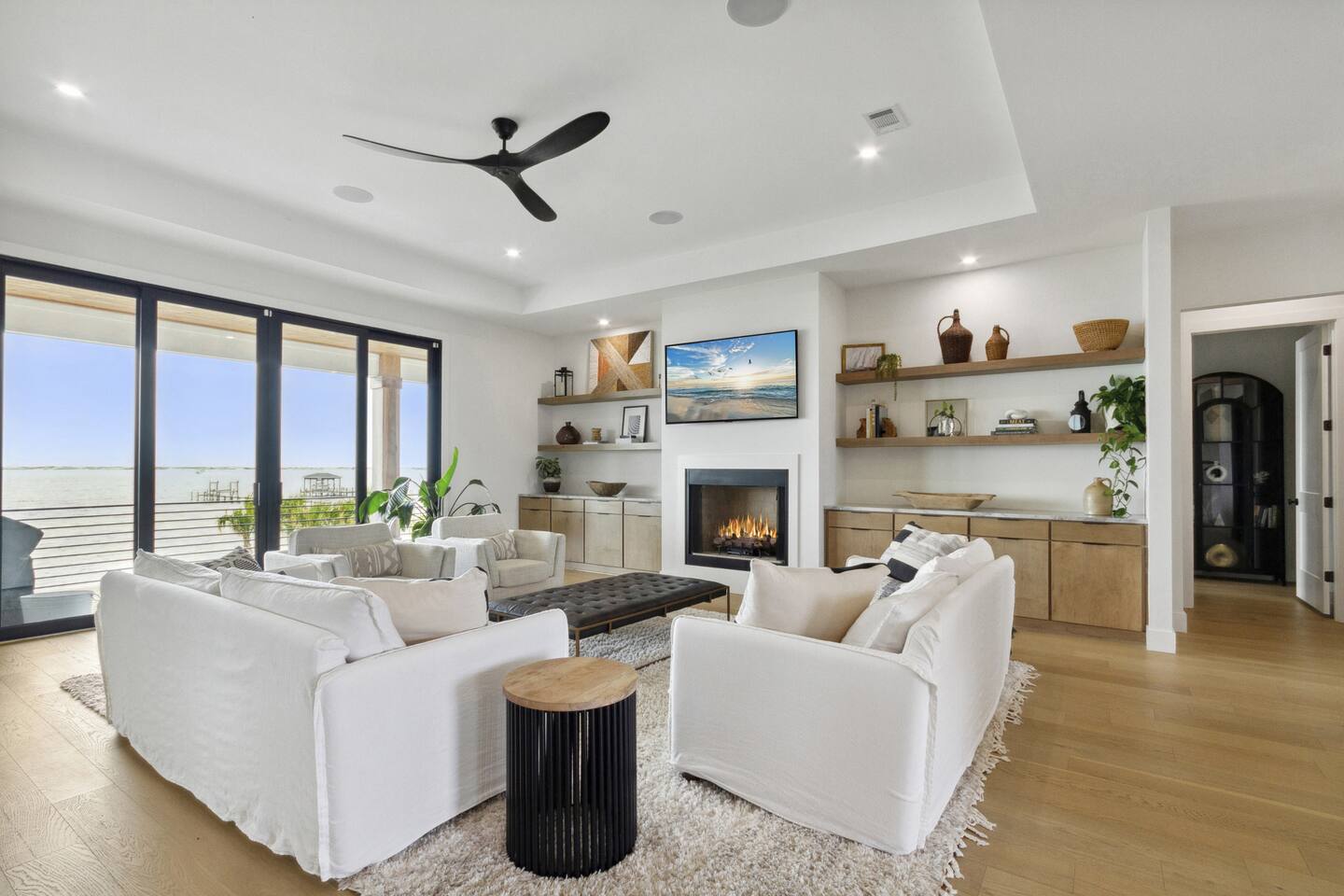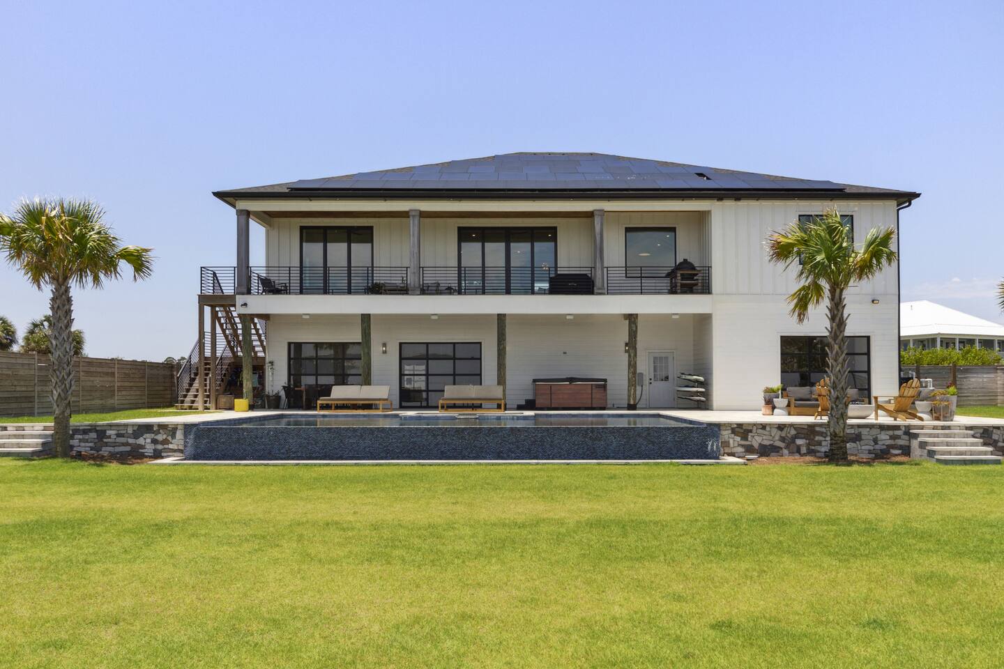 Enjoy our beautiful waterfront oasis featuring a custom infinity edge pool, hot tub, firepit, and plenty of places to lounge. Play on our private beach, go paddleboarding or jump off the dock into the clear inter-coastal waters. Large windows offer spectacular views from every room in the house. Open floor plan living ensures you can easily spend quality time together while taking in the breathtaking view.