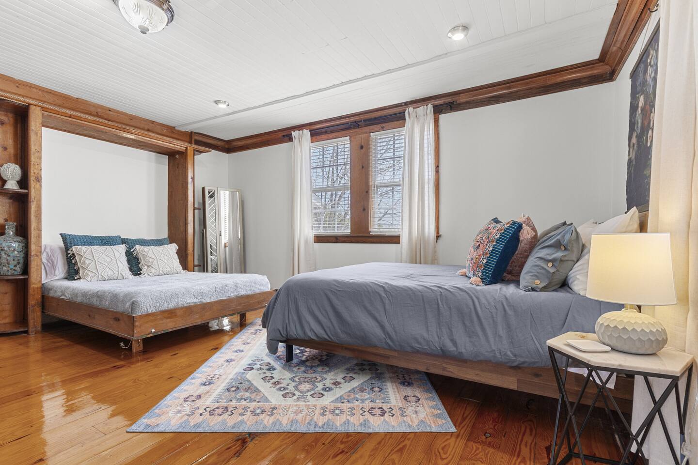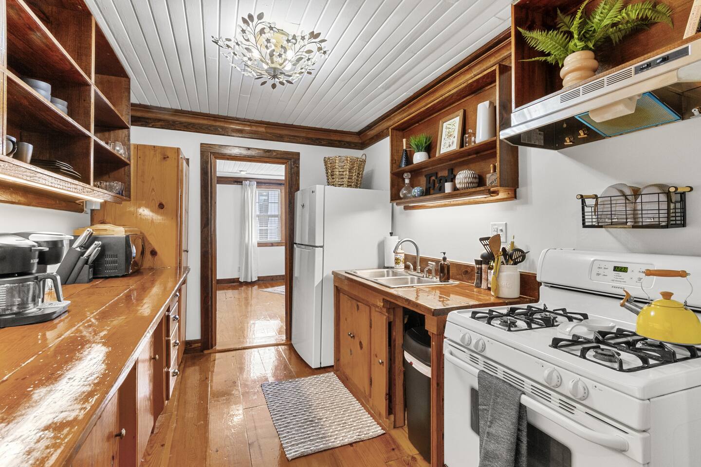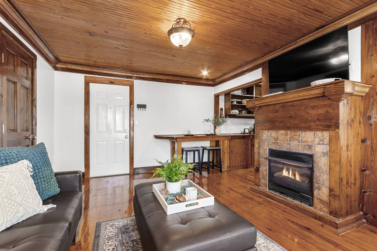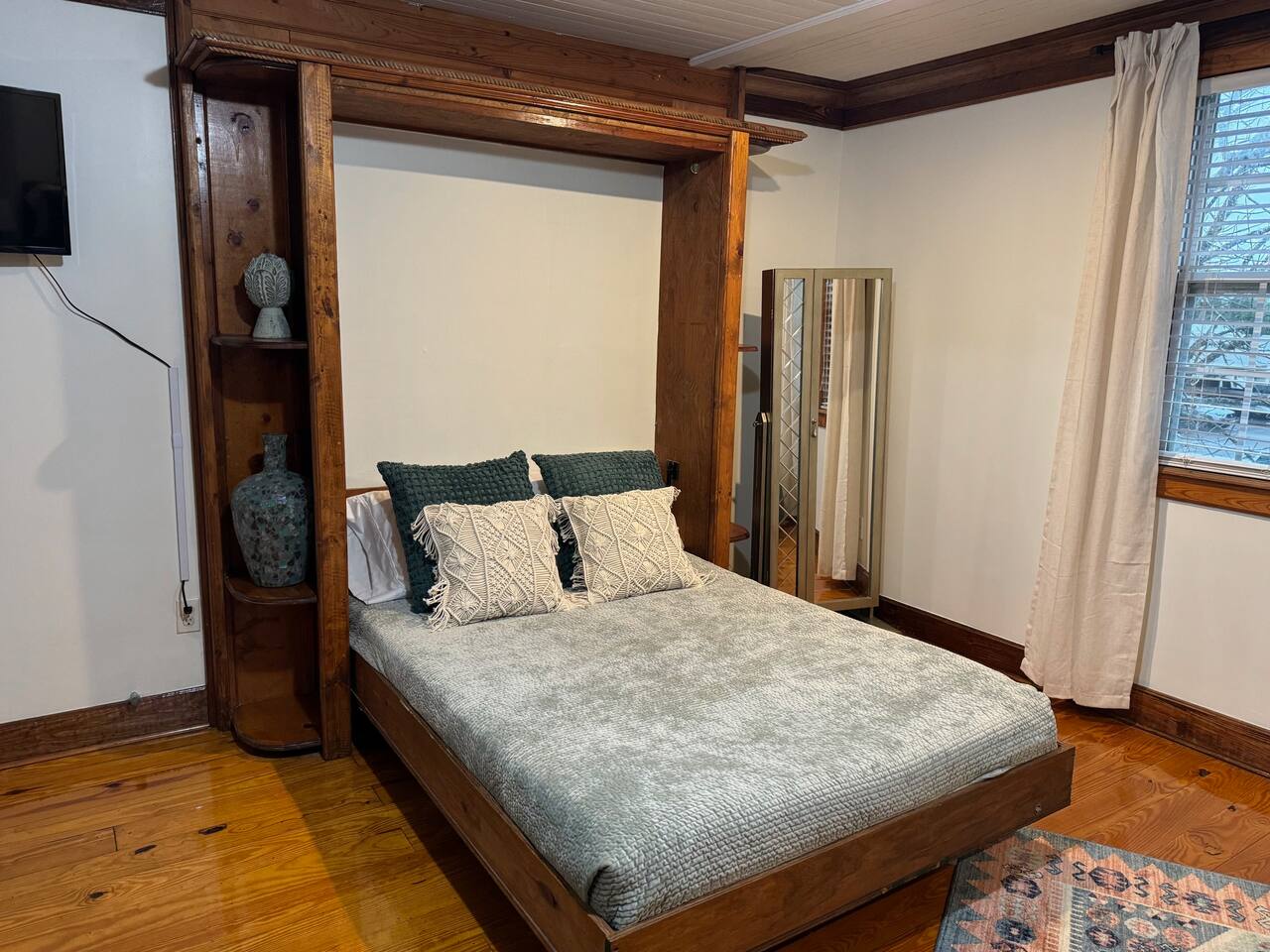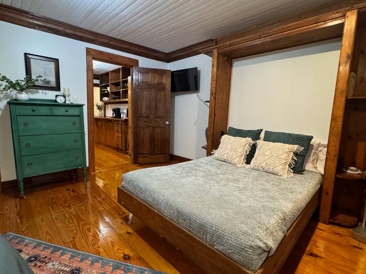This spacious one bedroom apartment can sleep four (one queen bed, one pull down full size Murphy Bed). The Murphy bed is located in the bedroom and can be pulled down when needed; we leave it made up all ready to use. Pillows are in a bin in the closet. The galley kitchen has full size appliances, a coffee bar and is fully stocked with everything you'll need during your stay. TV's are provided in both the living room and bedroom. Guests must log into their own streaming services for viewing. Living room TCL Smart Roku TV is set up in guest mode which facilitates easy log in and log out for guests. The bedroom TV is not a smart Roku TV and guests will need to log out of their streaming services from either their phone or their laptop.