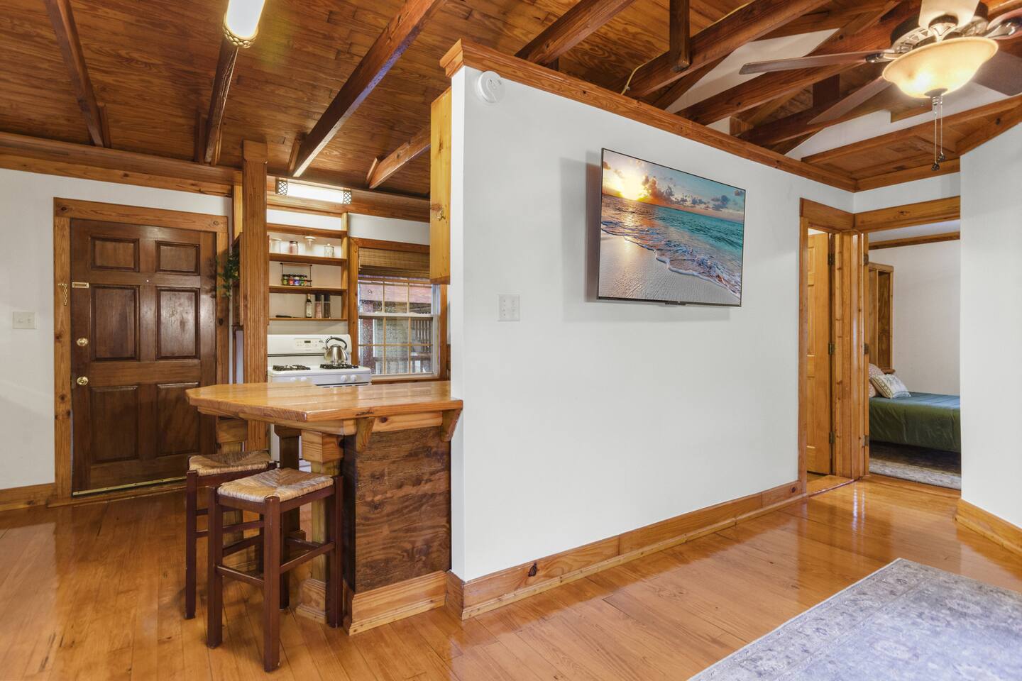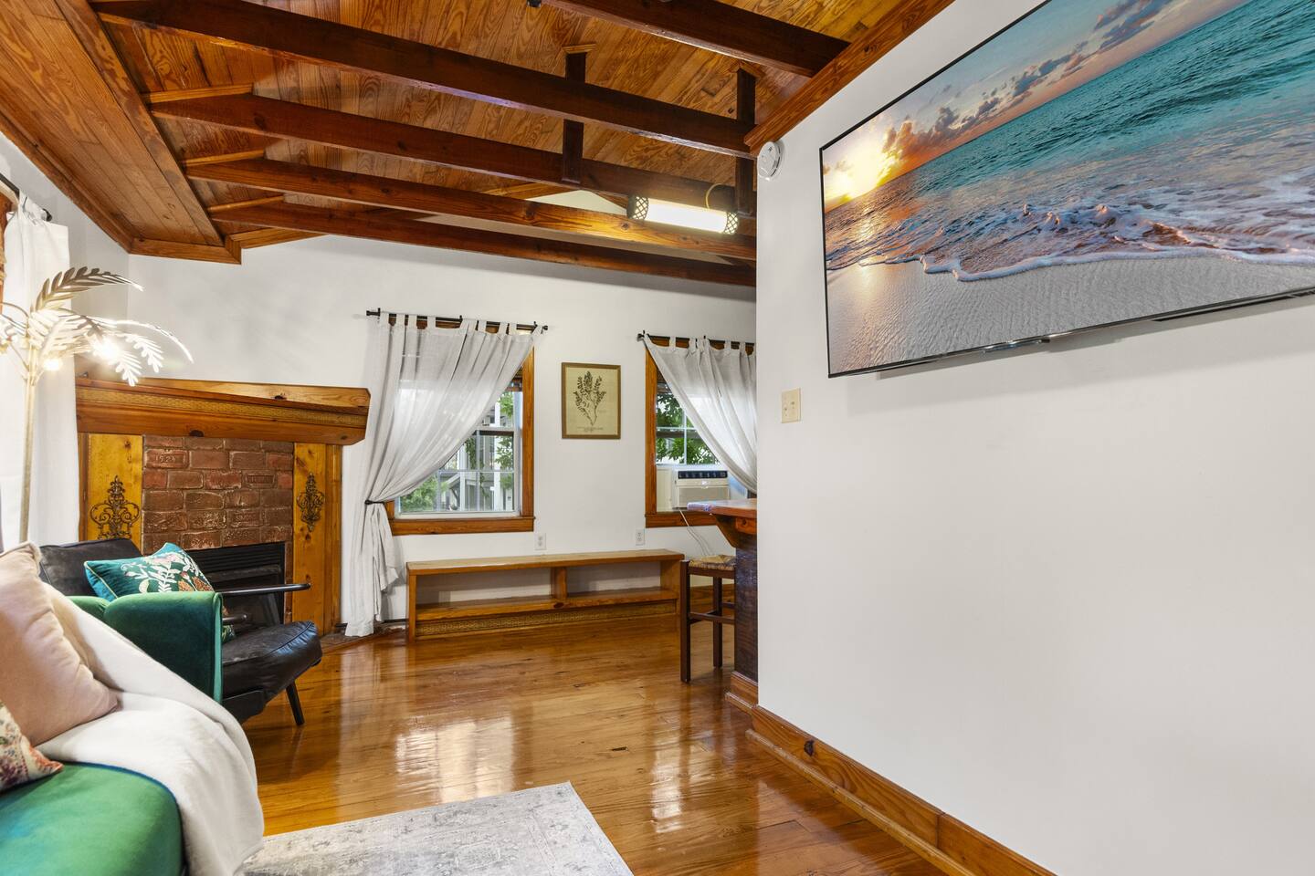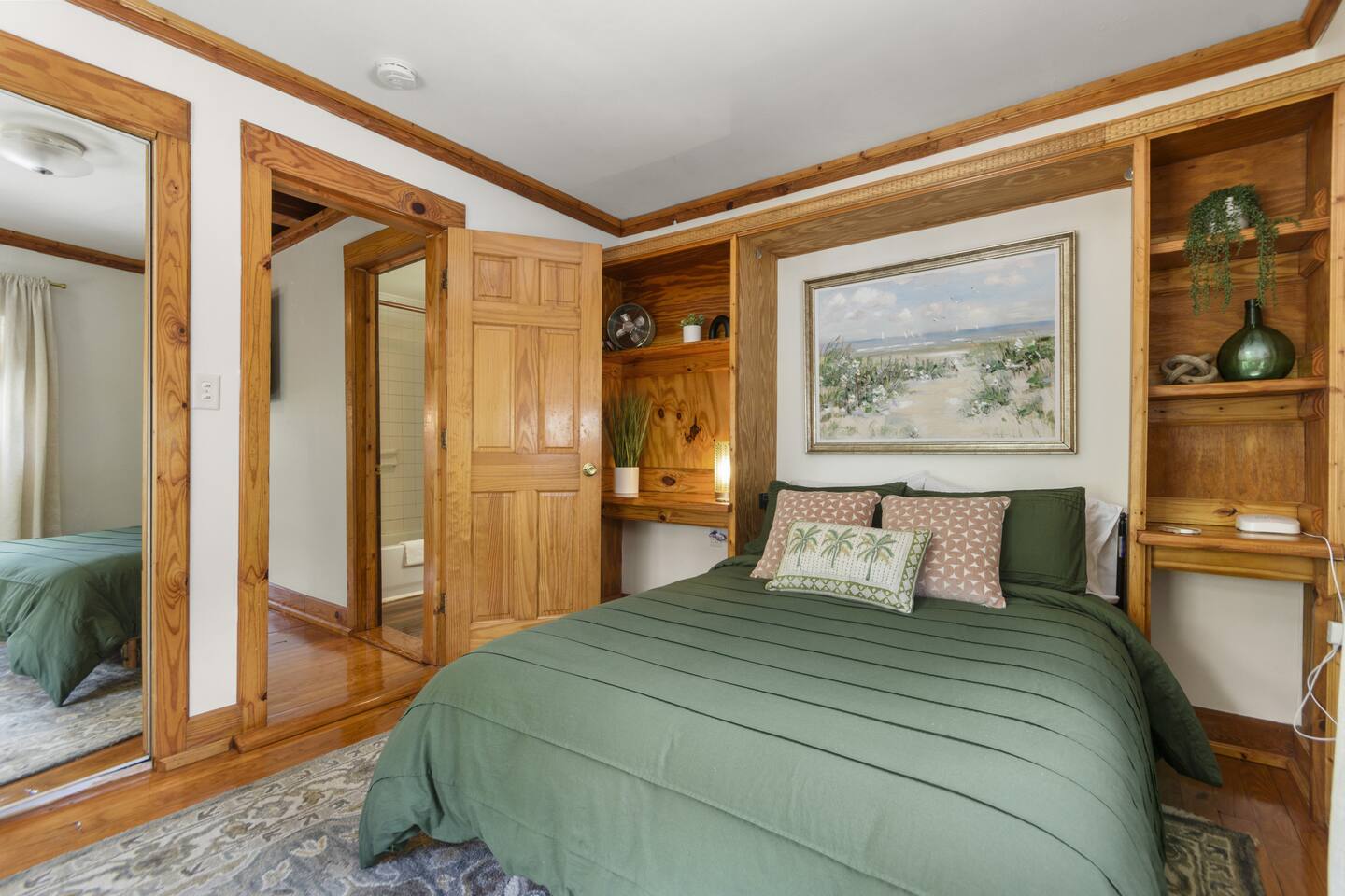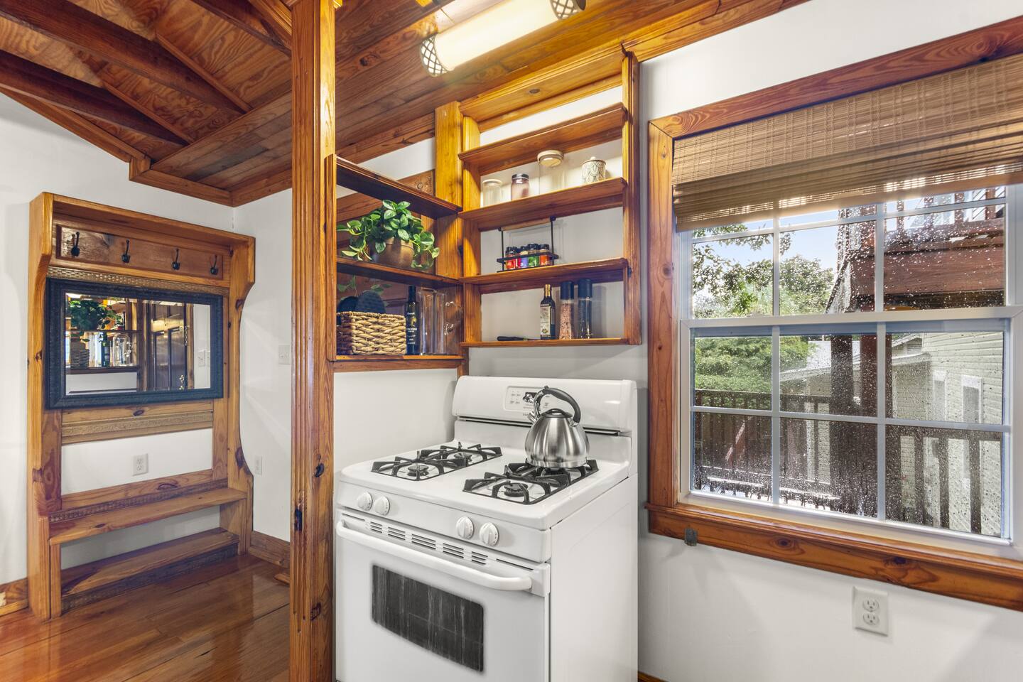 The full kitchen is equipped with a gas range, full-size refrigerator, and all the essentials you need to prepare a delicious meal at home. After a day of exploring, unwind in the cozy living area and enjoy a restful night's sleep in the comfy vintage full-size Murphy bed. The bathroom is thoughtfully designed with a tub shower combo and all the necessities to ensure your stay is comfortable. Located less than a mile from the heart of downtown, you'll find it easy to walk to nearby restaurants, coffee shops, museums, and more. For your convenience, a grocery store is situated within a half-mile. When you're ready for a beach day, Pensacola Beach is just 9 miles away, accessible by a scenic drive over two bridges. This apartment offers the perfect blend of historic charm and modern amenities, making it an ideal choice for your stay.
