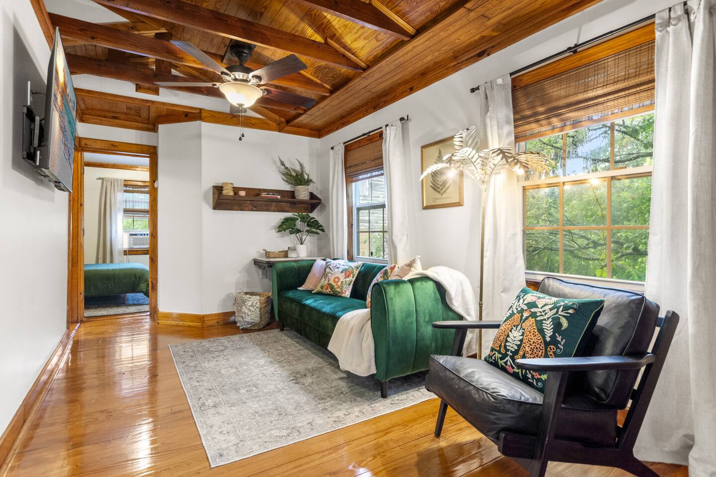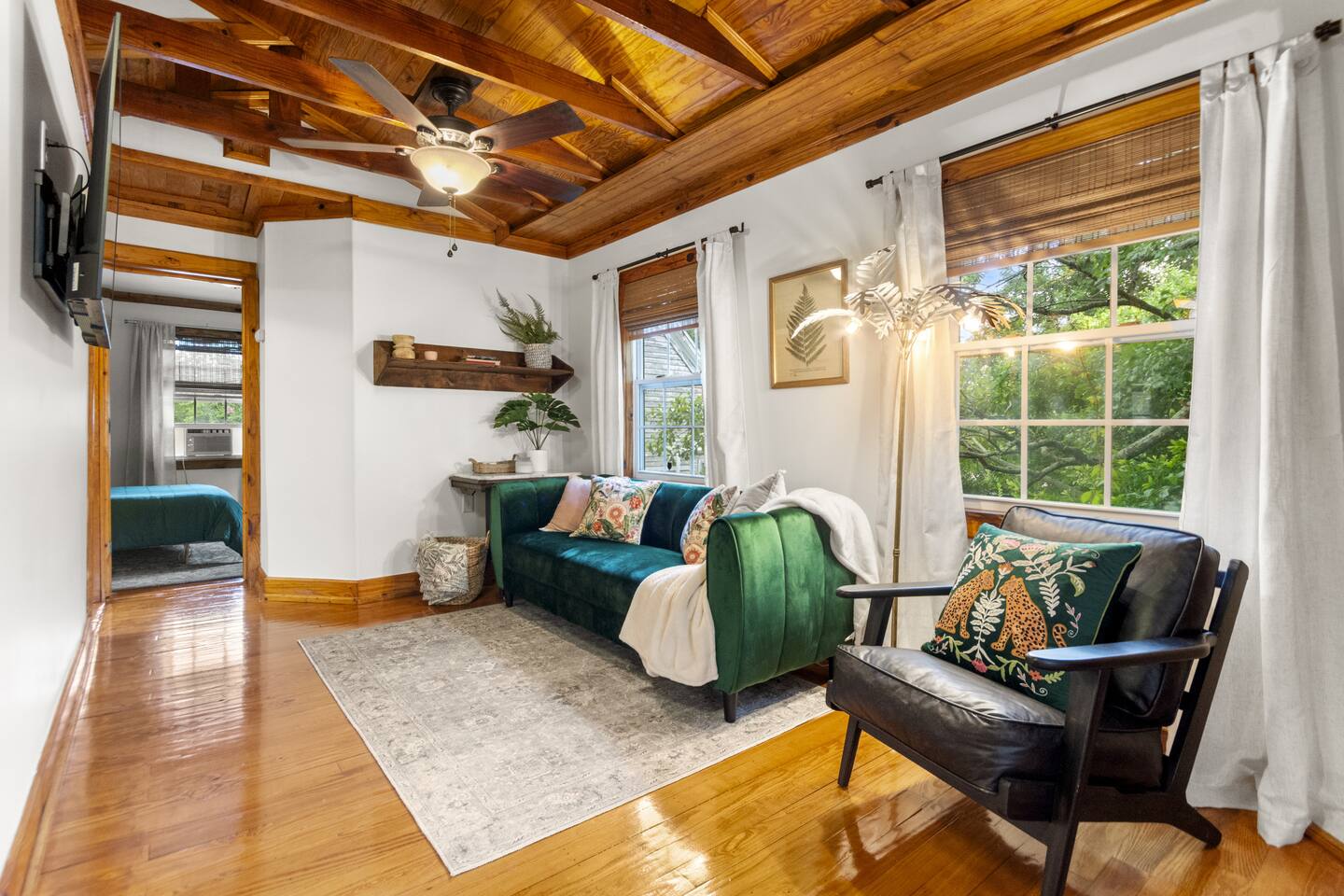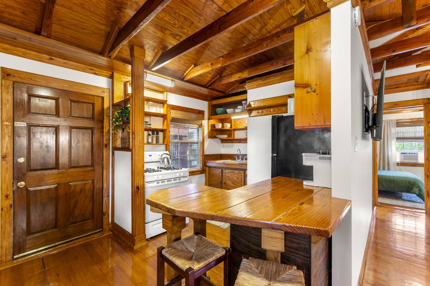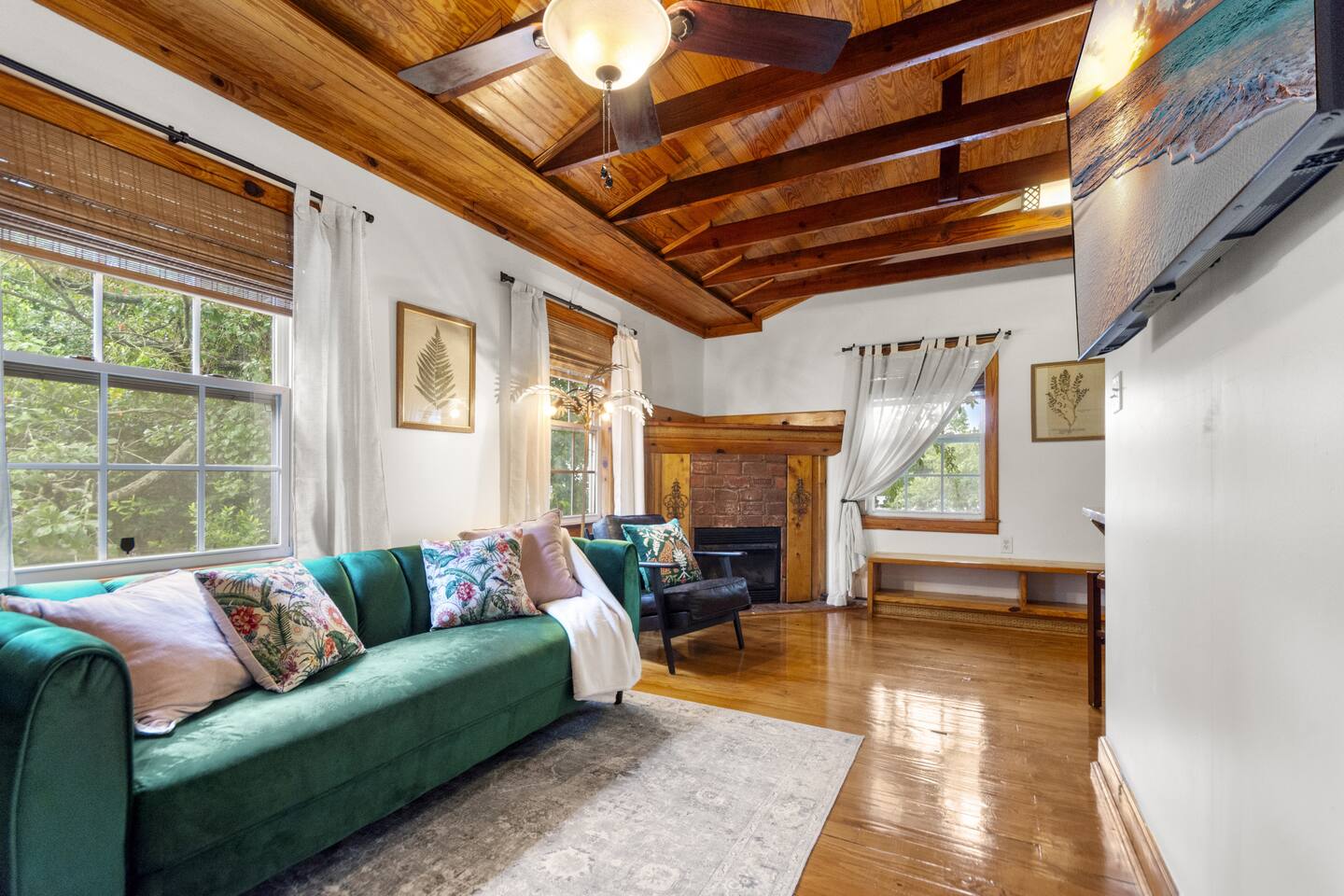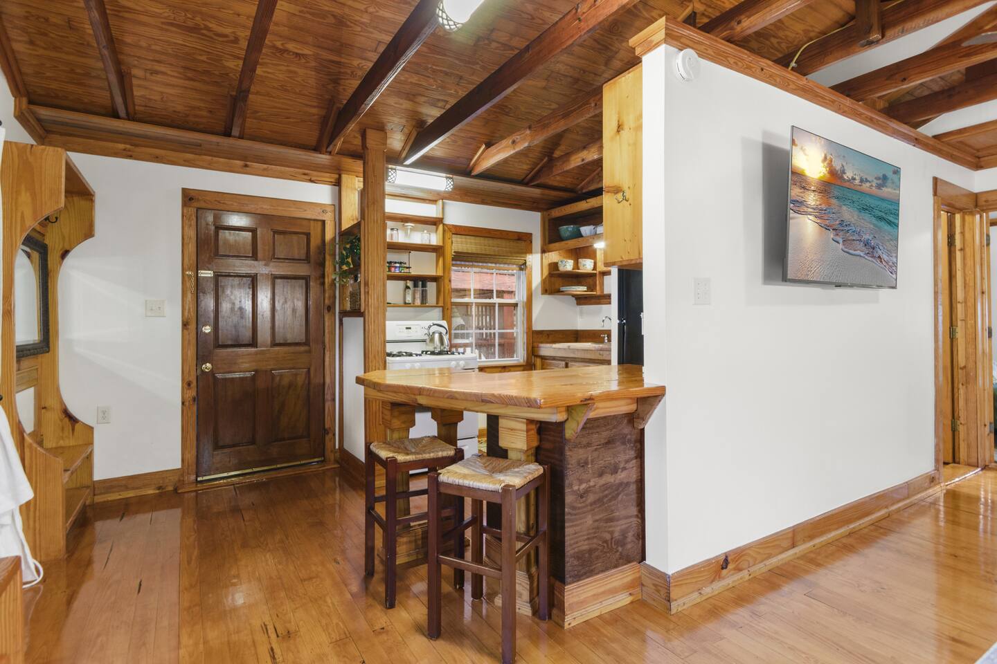 The full kitchen is equipped with a gas range, full-size refrigerator, and all the essentials you need to prepare a delicious meal at home. After a day of exploring, unwind in the cozy living area and enjoy a restful night's sleep in the comfy vintage full-size Murphy bed. The bathroom is thoughtfully designed with a tub shower combo and all the necessities to ensure your stay is comfortable. Located less than a mile from the heart of downtown, you'll find it easy to walk to nearby restaurants, coffee shops, museums, and more. For your convenience, a grocery store is situated within a half-mile. When you're ready for a beach day, Pensacola Beach is just 9 miles away, accessible by a scenic drive over two bridges. This apartment offers the perfect blend of historic charm and modern amenities, making it an ideal choice for your stay.