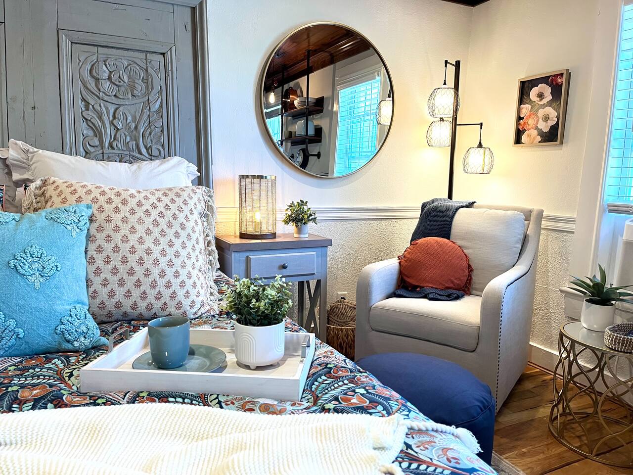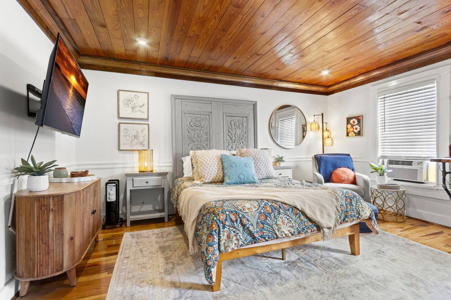 Spend your next vacation or trip to Pensacola in this charming, eclectic studio featuring open concept living and a comfy queen size bed with one of a kind headboard. This apartment is part of a beautiful historic home in downtown and is within walking distance of restaurants, shopping, nightlife, museums, etc. And it's only 10 miles from the beautiful white sands of Pensacola Beach.