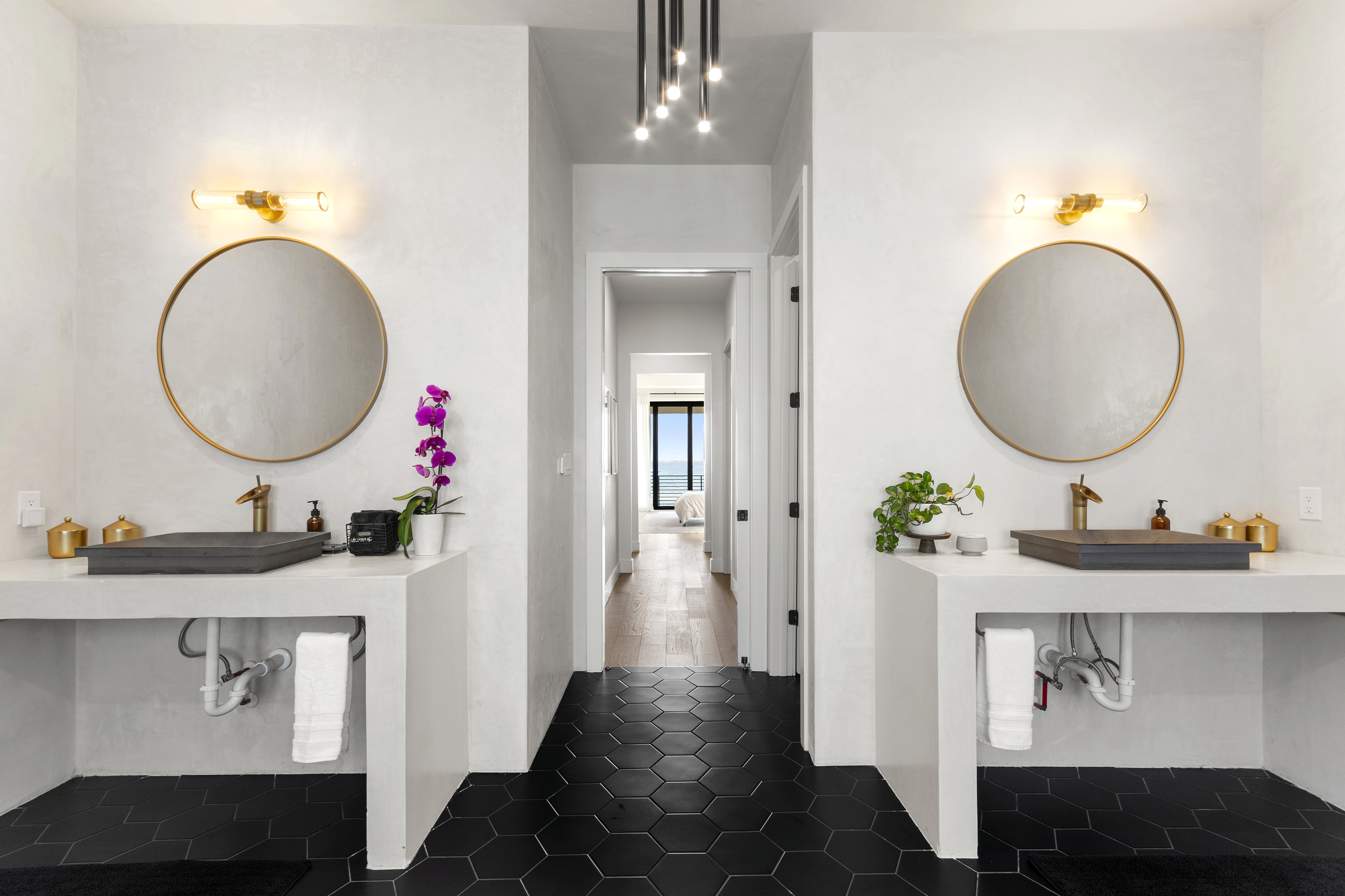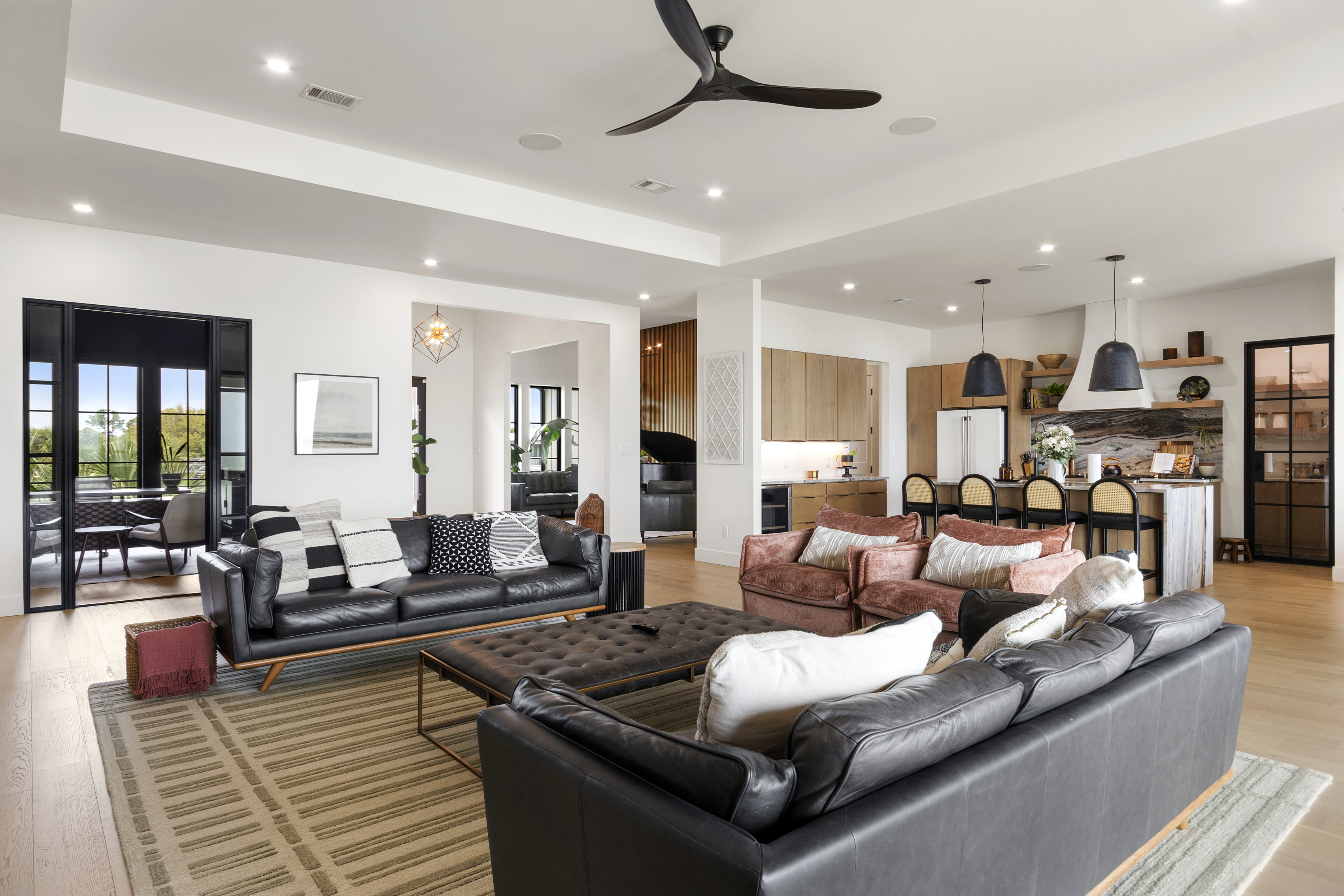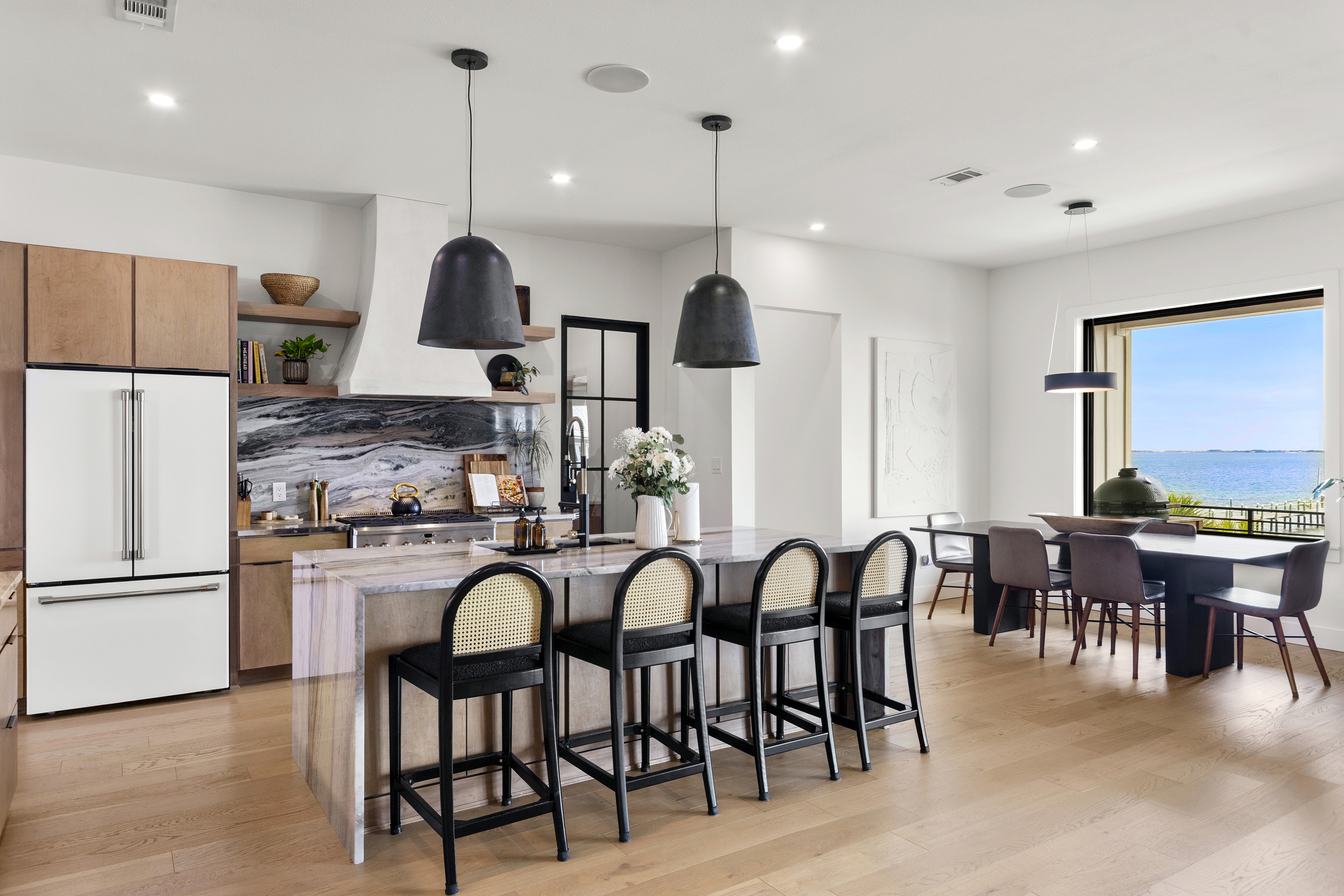Enjoy our beautiful waterfront oasis featuring a custom infinity edge pool, hot tub, firepit, and plenty of places to lounge. Play on our private beach, go paddleboarding or jump off the dock into the clear inter-coastal waters. Large windows offer spectacular views from every room in the house. Open floor plan living ensures you can easily spend quality time together while taking in the breathtaking view.